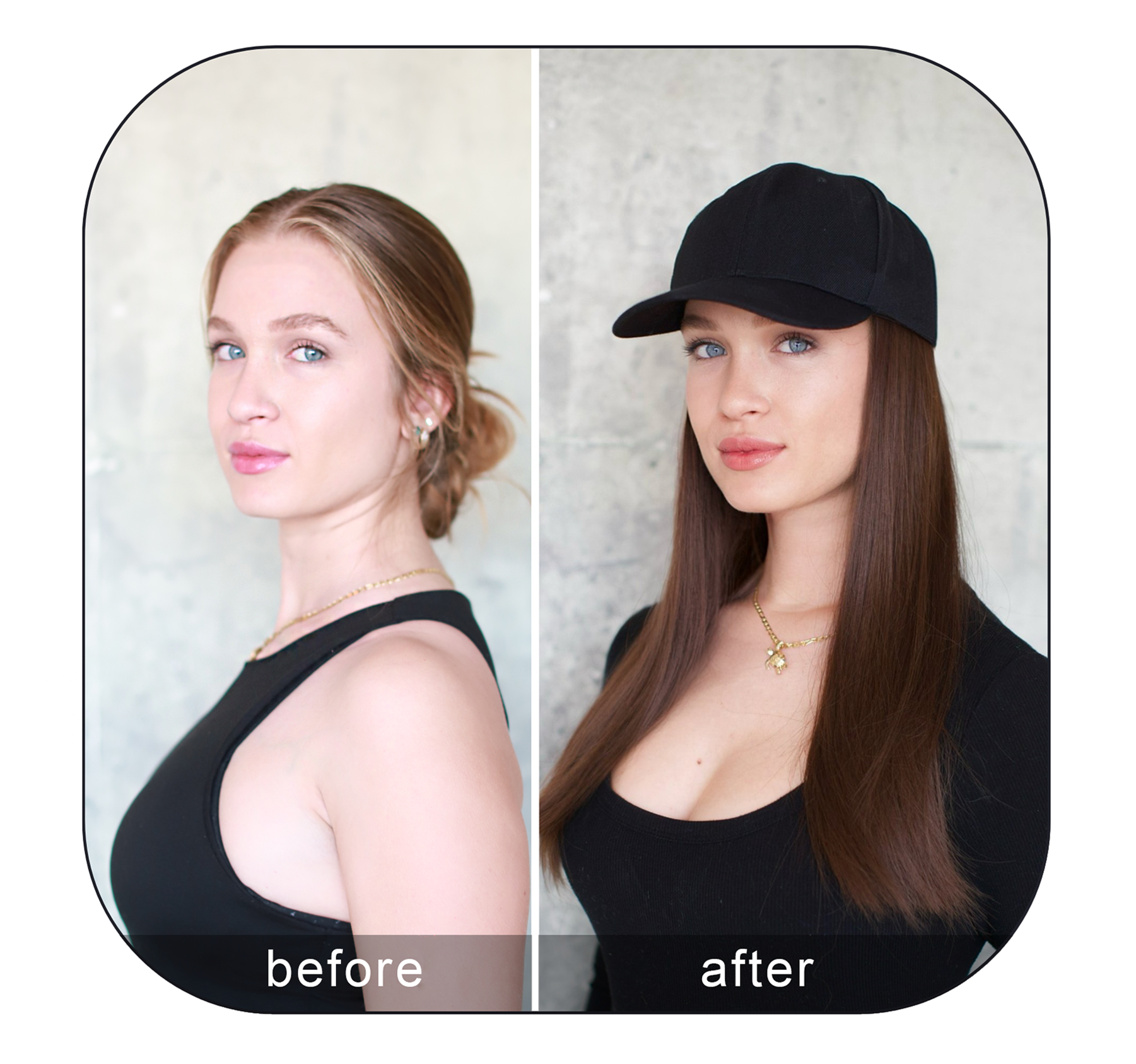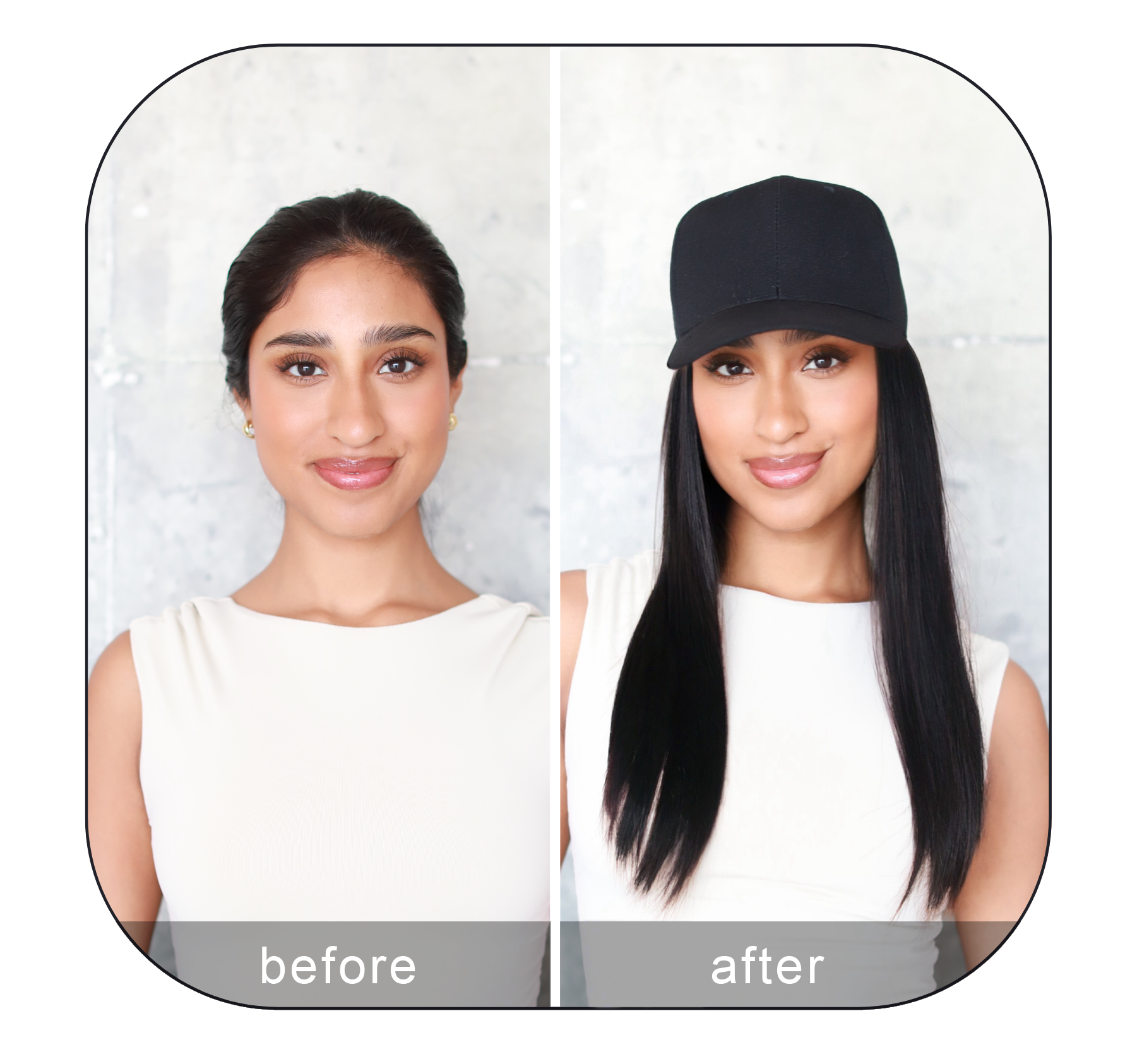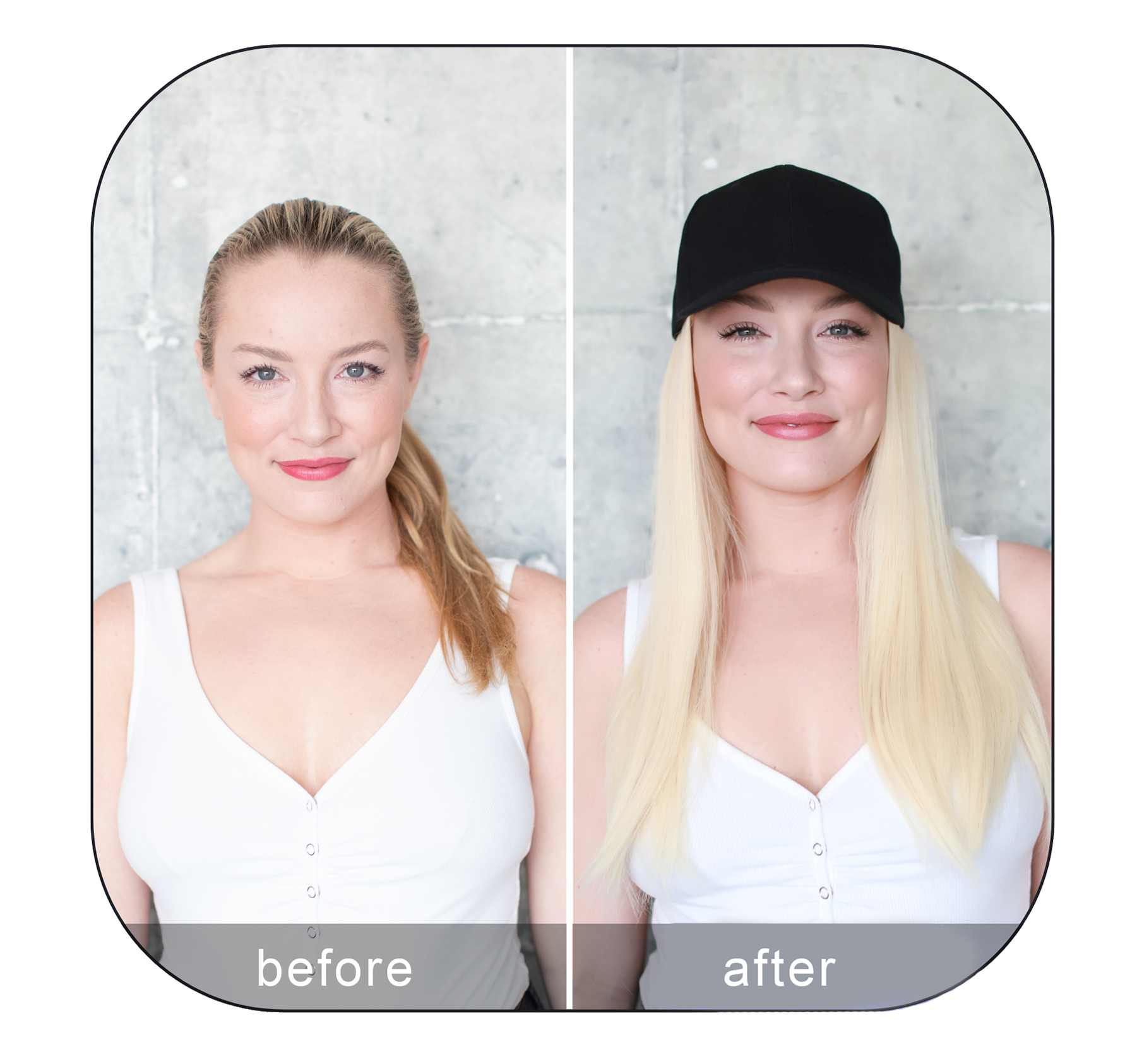Just tie up your hair and wear the baseball cap hair or use a wig cap if more convenient.
